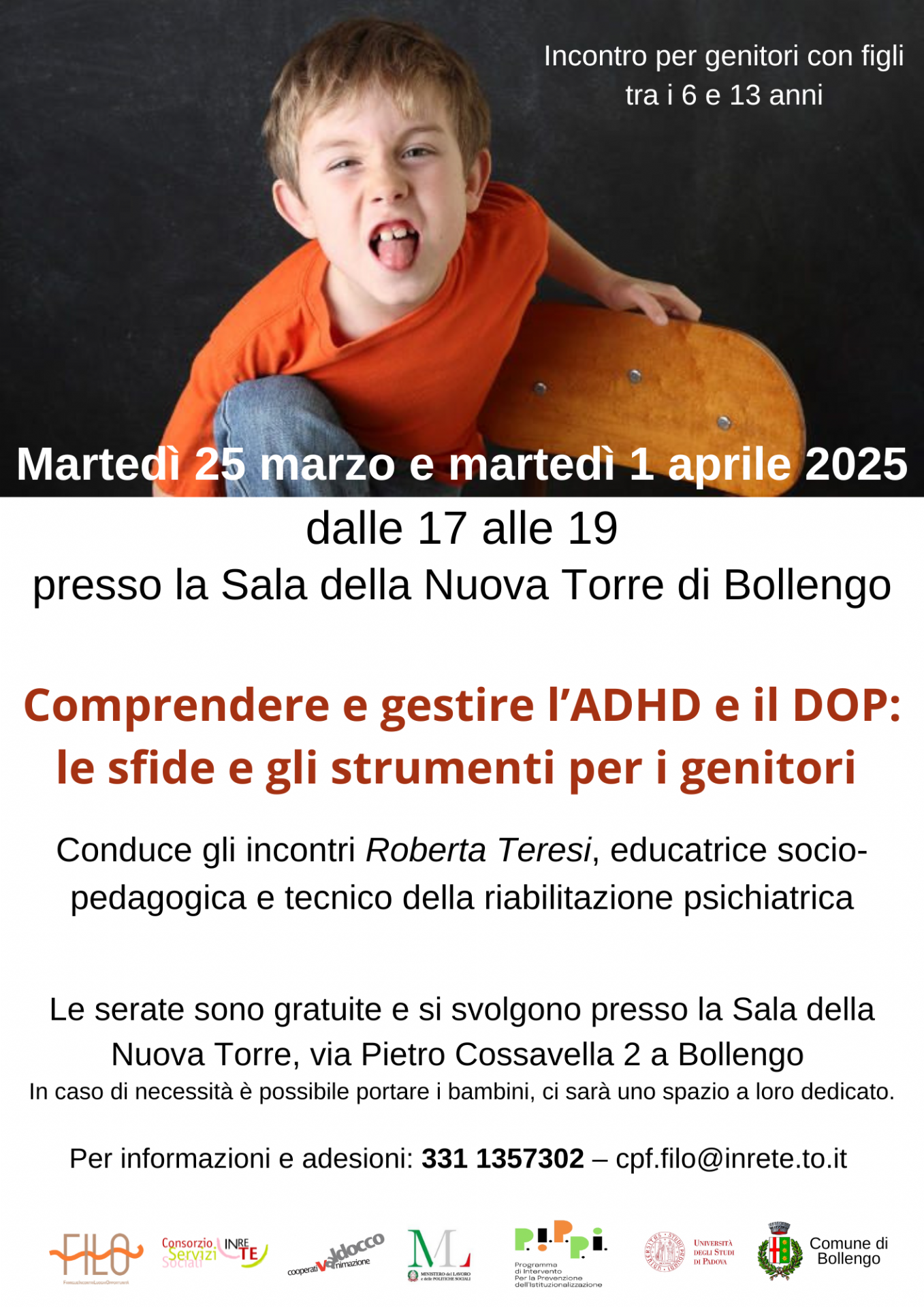 Per saperne di più e confrontarti con altri genitori, per comprendere le sfide e gli strumenti utili, questo breve percorso potrà essere un 'occasione utile. Per info e prenotazioni: 331 1357302