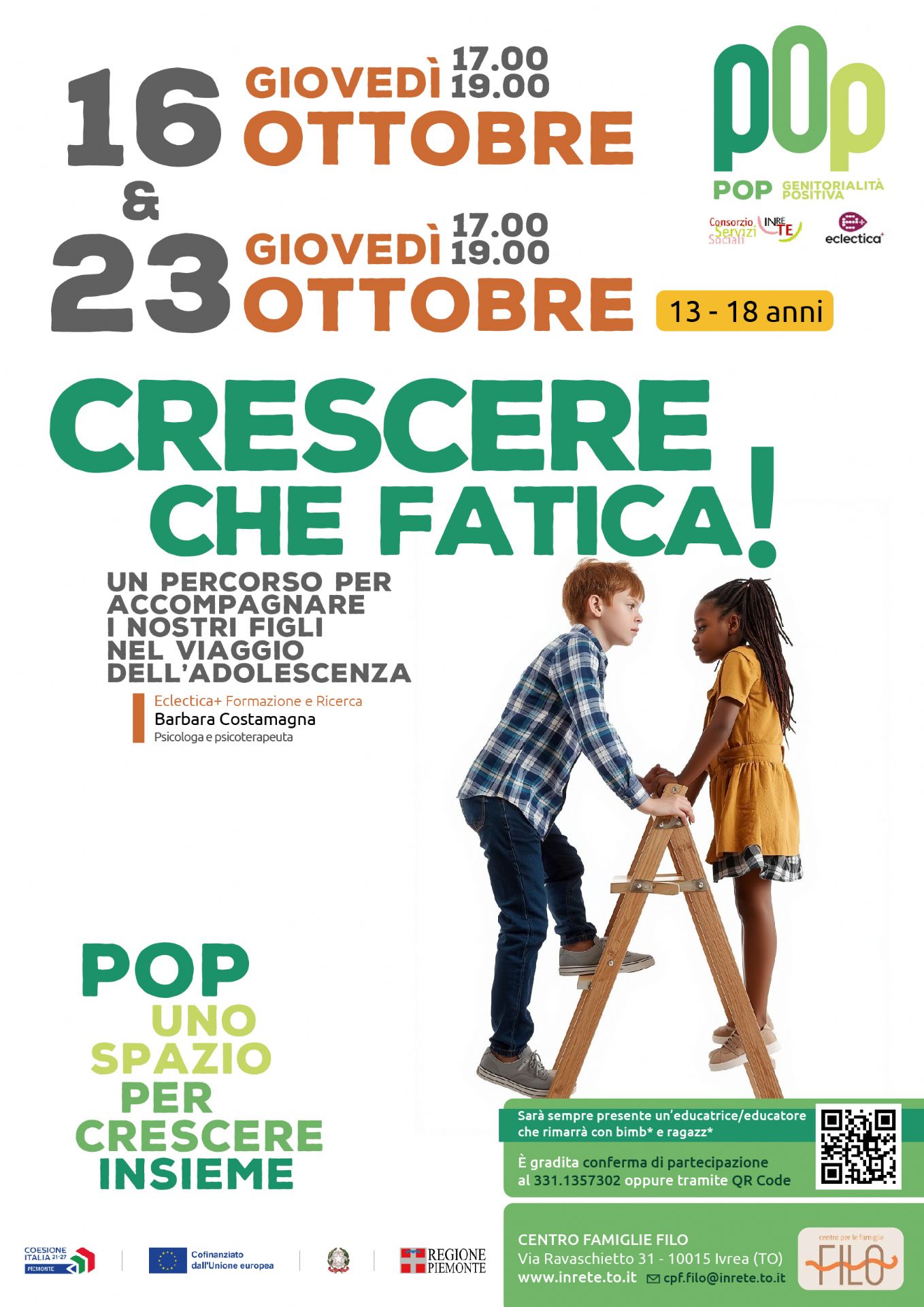 Sono previsti due incontri, il 16 e il 23 ottobre dalle 17 al Centro per le Famiglie.