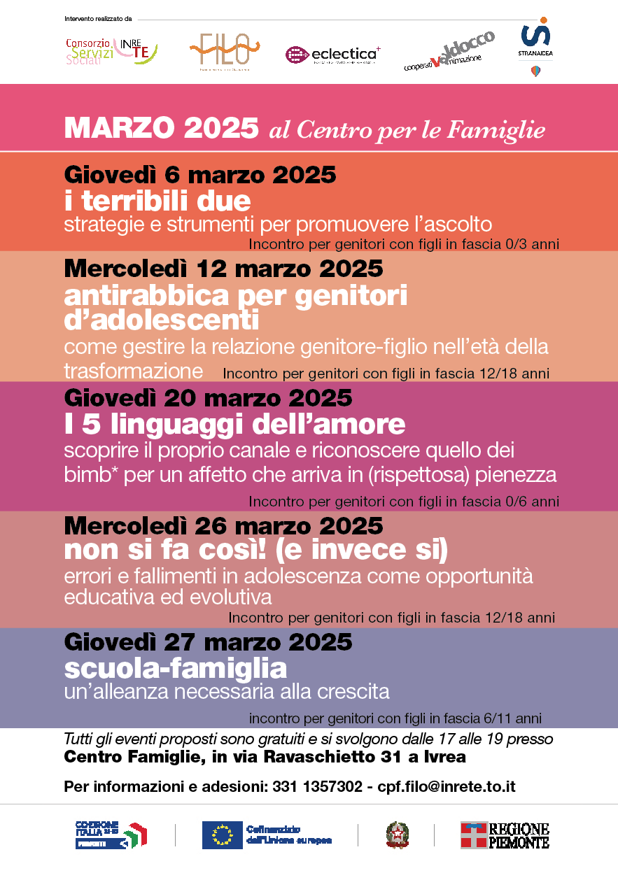 Continuano gli incontri rivolti ai genitori all'interno della progettualità "Promozione della genitorialità positiva", progetto realizzato all'interno del Programma Regionale (PR) Fondo Sociale Europeo Plus (FSE+) 2021-2027 della Regione Piemonte.