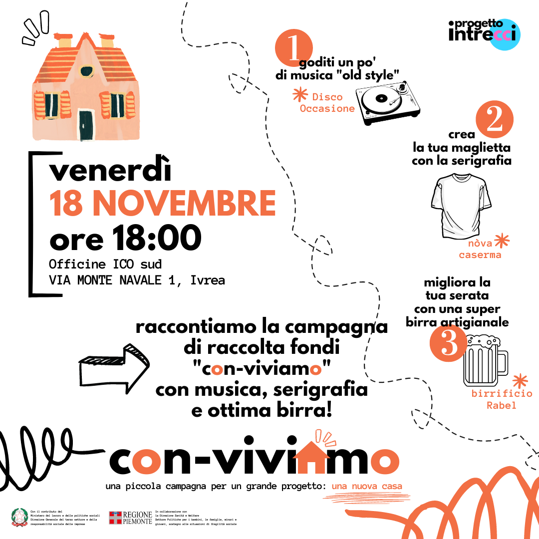 Fondazione di Comunità del Canavese con il Consorzio In.Re.Te e gli altri partner del progetto “Intrecci. Percorsi di inclusione e solidarietà” raccontano la campagna di raccolta fondi "con-viviamo" con musica, serigrafia
