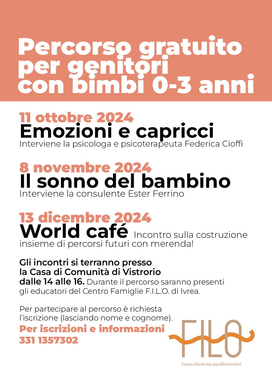 Prosegue presso la Casa di Comunità di Vistrorio il percorso dedicato ai genitori con bimbi 0-3 anni che vivono in Valchiusella.