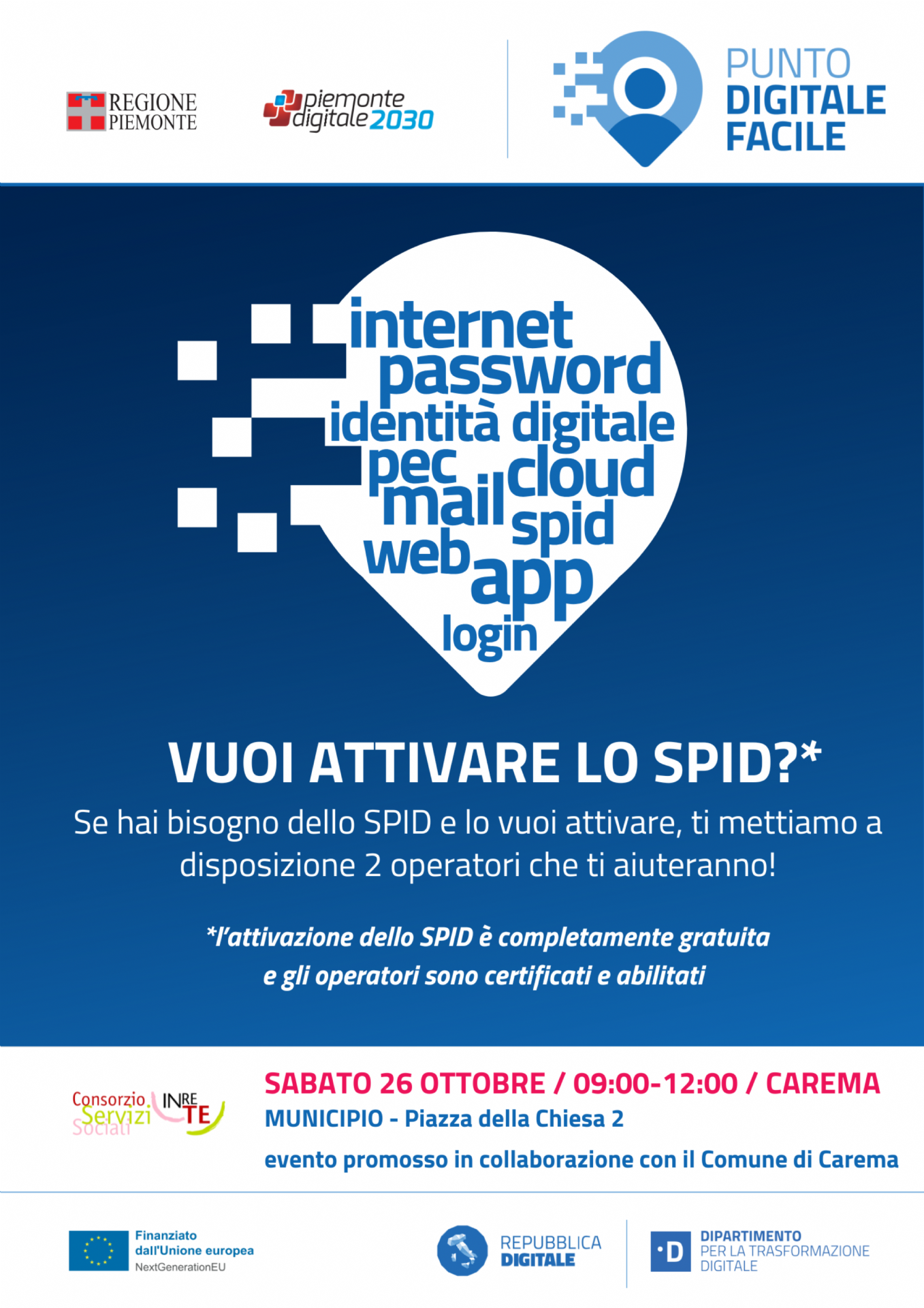 Il Consorzio IN.RE.TE. e il Comune di Carema metteranno a disposizione della cittadinanza due Facilitatori Digitali per l'attivazione dello SPID.