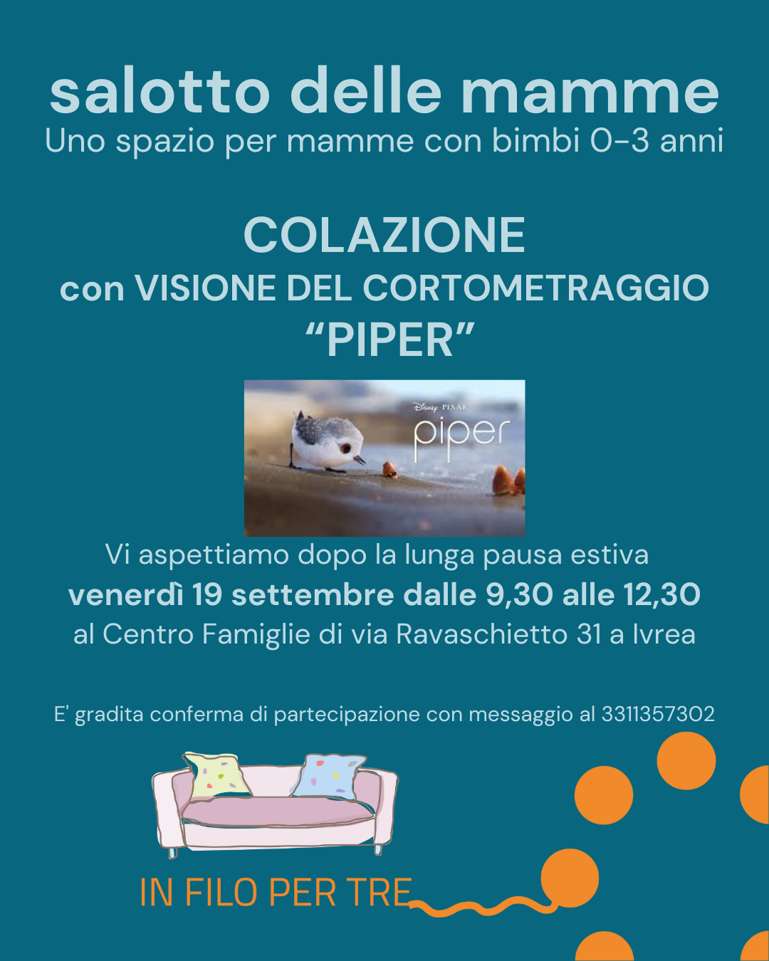 In autunno è ripartito il Salotto delle Mamme, uno spazio di incontro, confronto e supporto tra mamme con bimbi 0-3 anni.