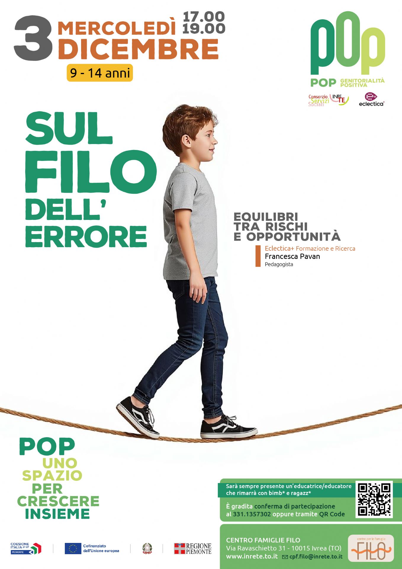 Incontro rivolto a genitori con figli di 9-14 anni. Una riflessione interessante sull'errore quale esperienza di crescita per la famiglia. Ci si ritrova mercoledì 3 dicembre dalle 17 al Centro per le Famiglie F.I.L.O.. Gradita conferma di partecipazione.